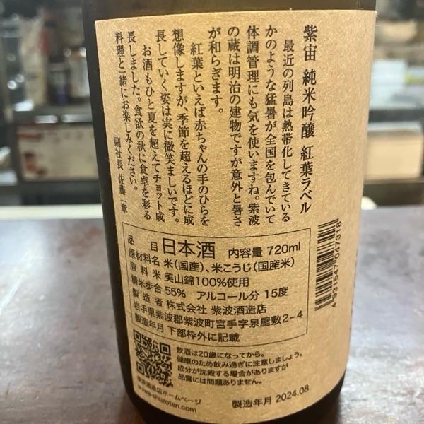 岩手県 紫宙 純米吟醸 紅葉ラベル