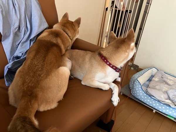 御飯食べまして、休憩タイムのワッチャカコンビは 場所取り合戦しながら 奥様の戻りを気にしてました😂