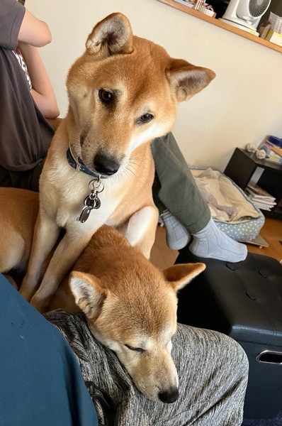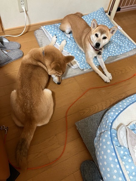 早起きしまして、散歩待ちのワッチャカコンビ😆