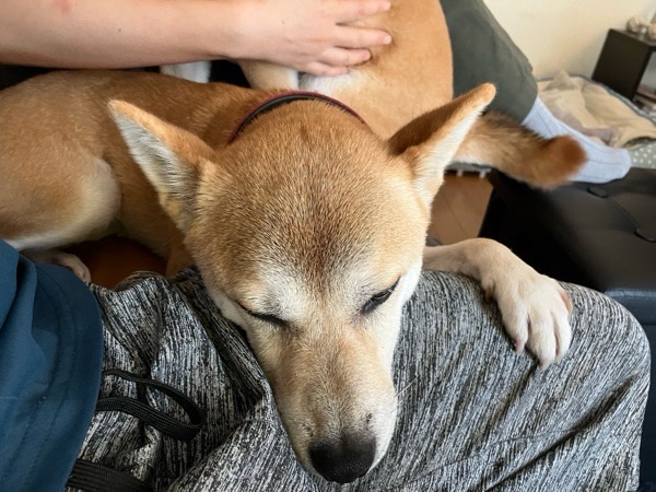 みるく先生も完全に リリ化しまして、飼い主を枕に夢の中💤