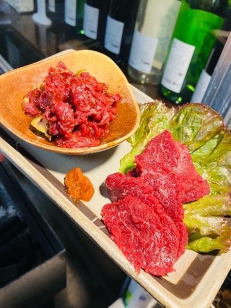 会津馬刺しと桜ユッケのハーフ&ハーフ。