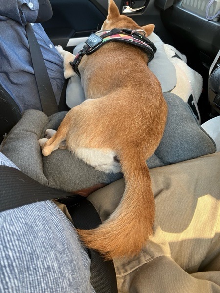 みるく先生、車に乗せると すぐ寝る体勢です😴