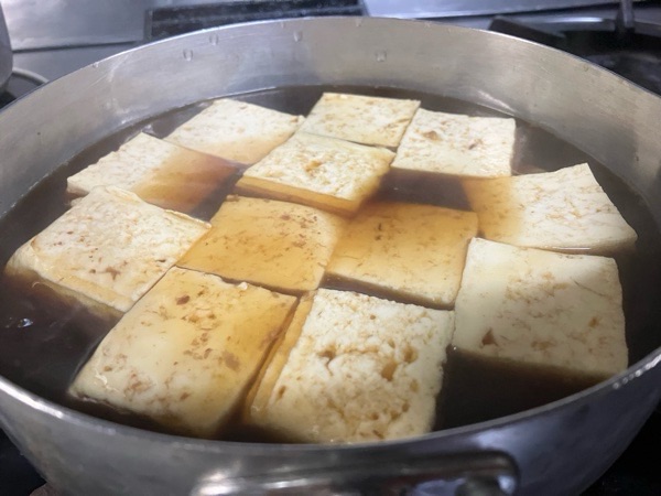 お店の準備へ入りまして、寒かったので お通し用の煮豆腐をコトコト🎶