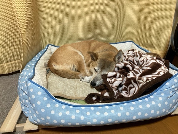 御飯を食べまして、畳みました瞬ぴぃの布団で先に寝ました みるく先生😴