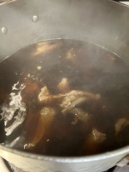 お店の準備へ入りまして、馬スジ煮込みの仕上げ🎶