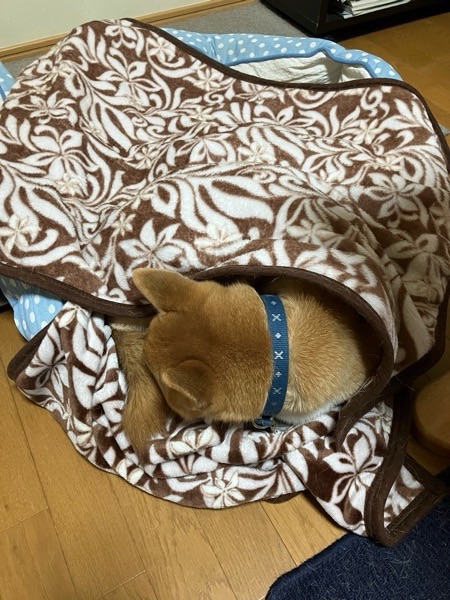 リリっちょは、お布団から落ちて寝ておりましたので、毛布掛けてあげました☺️