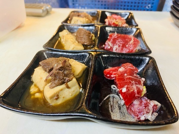 お店の準備へ入りまして、お通し用の馬肉煮豆腐をコトコトと〜♪( ´▽`)