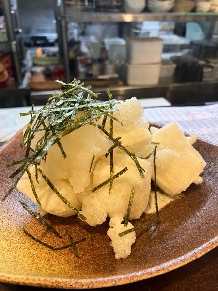 煮豆腐とマグロの塩ユッケをお通しで お出ししましたが、マグロの塩ユッケを単品で もらえますか⁈とお変わりオーダー頂きまして、嬉しゅうございました🙌