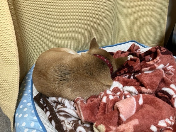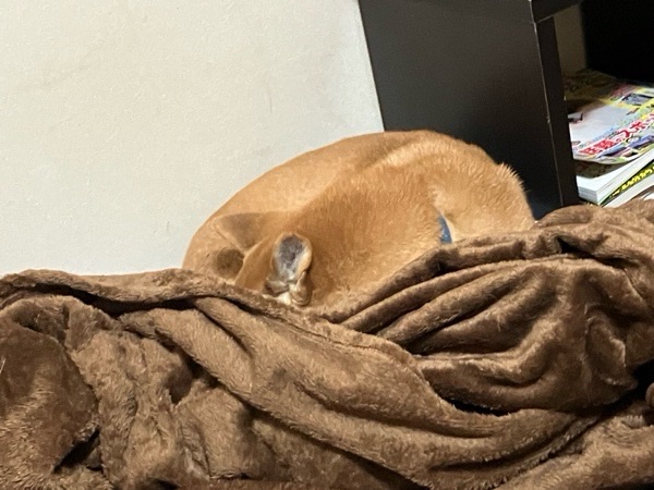 御飯食べまして、リリっちょが瞬ぴぃの布団へ いち早く移動😅