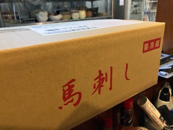 お店の準備を終わらせまして、馬刺し到着ッ!