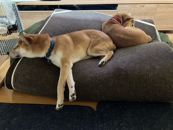 みるくも暖まったのか、お布団へ やって来まして お尻と背中をくっ付けて、お昼寝タイムでございました💤