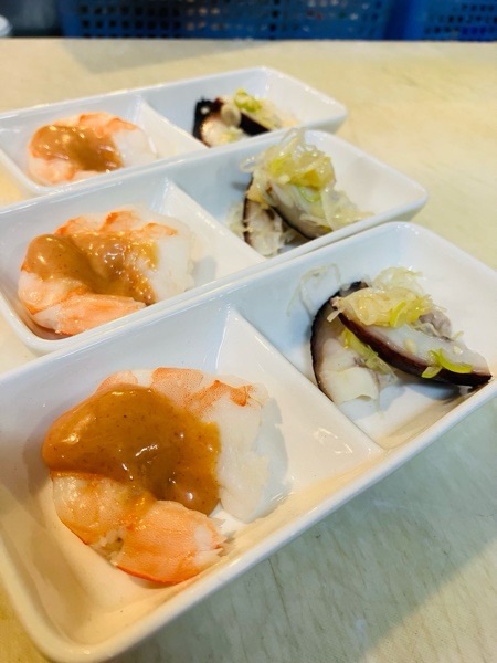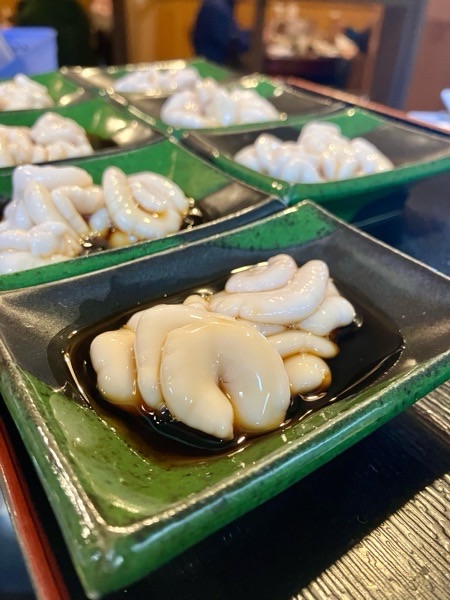 地蛤の酒蒸しと会津馬刺し。