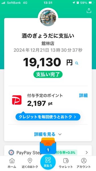 お酒の注文 買い付けをしましたら、大きな金額で2等賞🎊