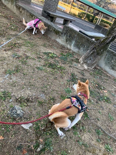 お散歩へ出ますと、女子コンビがシンクロシッコ🎶