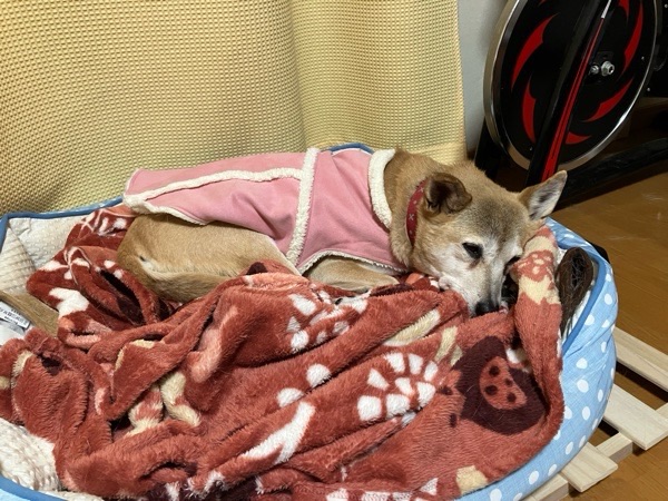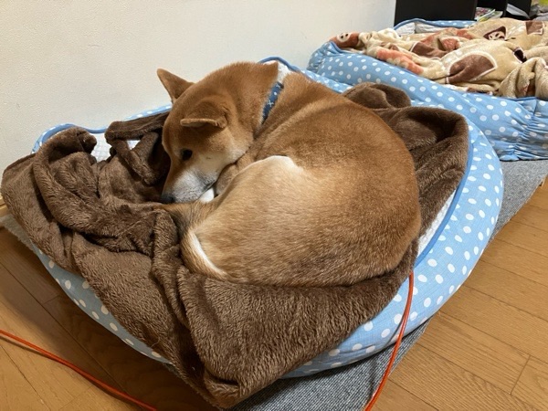 ヒバ子さん、お鼻を布団に突っ込みまして、爆睡😪