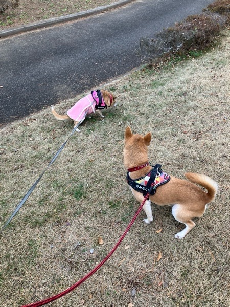 夕方の お散歩は、シンクロシッコ(=´∀`)人(´∀`=)