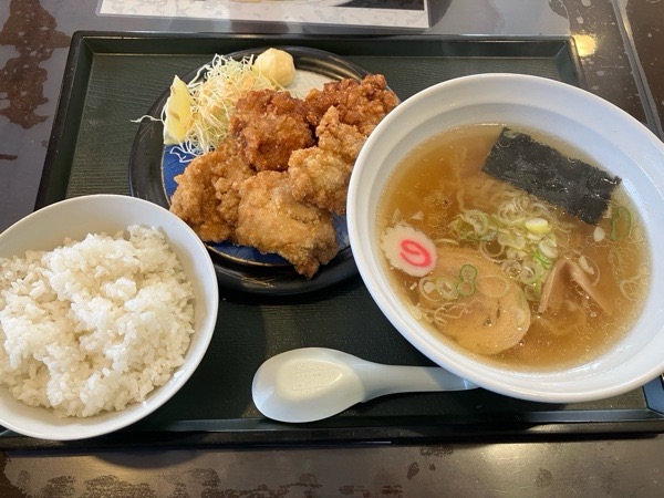 瞬ぴぃは唐揚げ定食、奥様はネギラーメンでございました😊