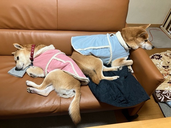 下っぱ みるくが真ん中で、リリっちょが端っこで寝ておりました😅