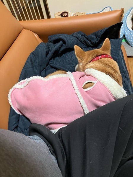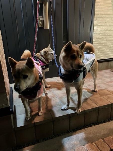 瞬ぴぃ お着替えしちやいまして、起きてもらって 暗い中お散歩でした🐕