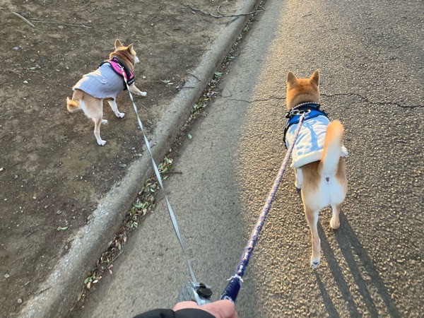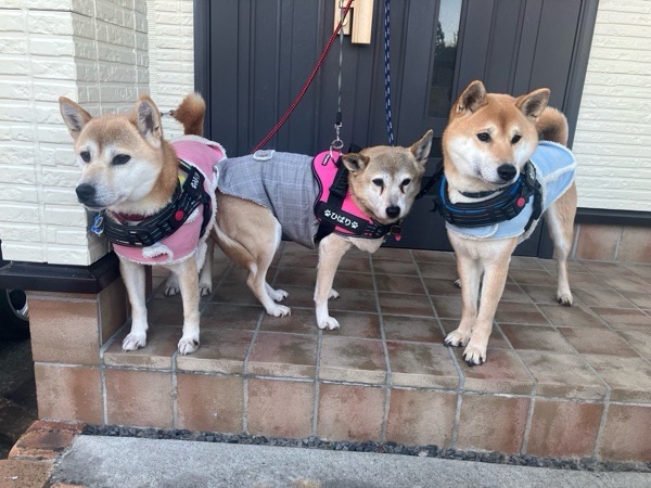 お散歩から帰って来まして、センターで 屁っぷり腰のボスと、助さん角さん的な ワッチャカコンビ😤
