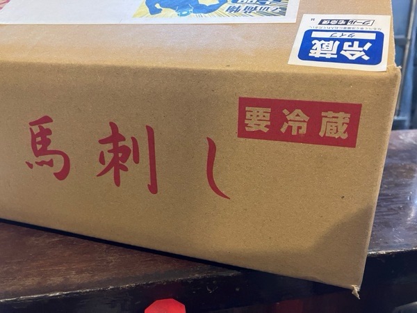 お店の準備へ入りまして、新たな馬肉が届きましてー🤗