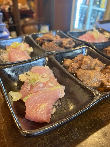 会津馬刺しと桜ユッケのハーフ&ハーフ。