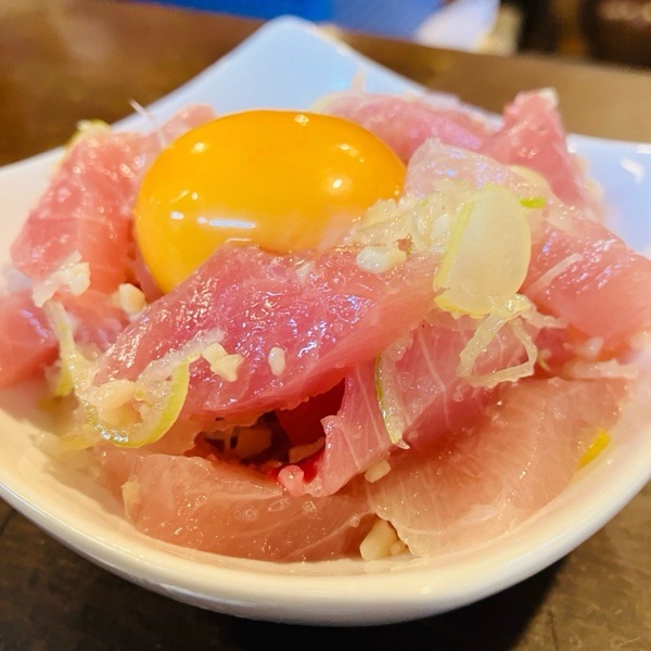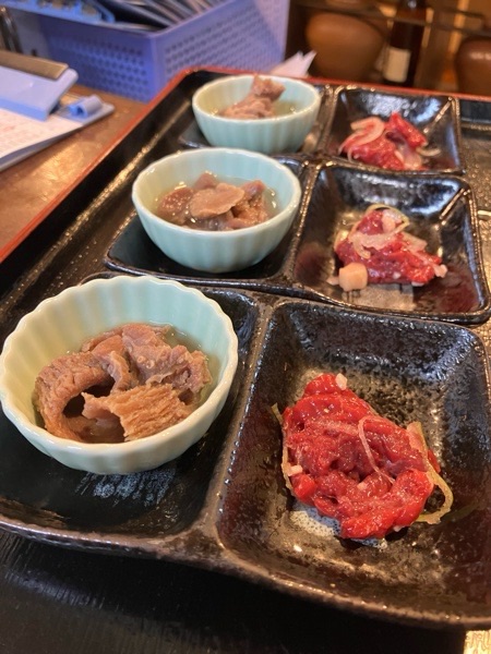 牛タン下の塩煮込みと馬肉の塩ユッケが お通し。