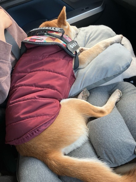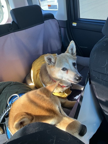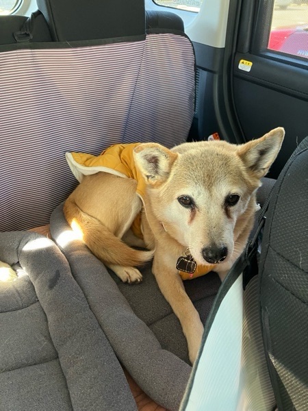 車の中は いつもほぼ寝ている感じの みるく先生は、お目目パッチリ😂