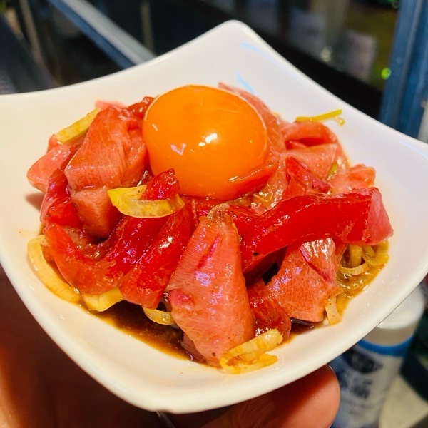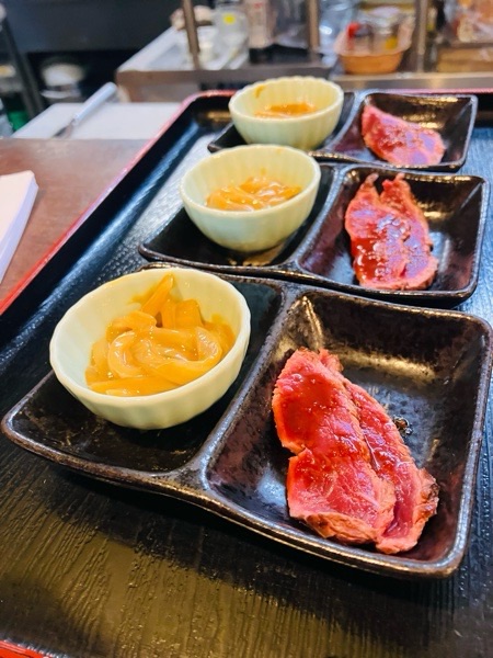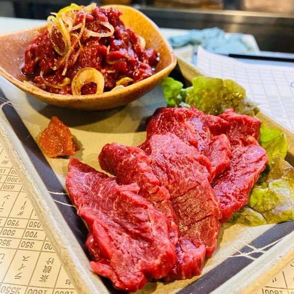 会津馬刺しと桜ユッケのハーフ&ハーフ。