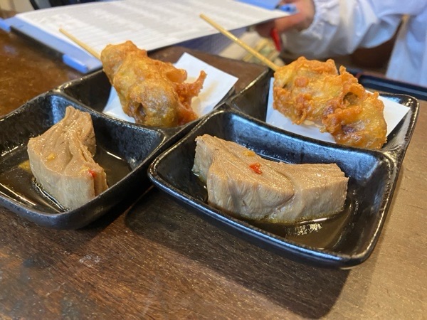 鮪の角煮と砂肝と葱の唐揚げが お通し。
