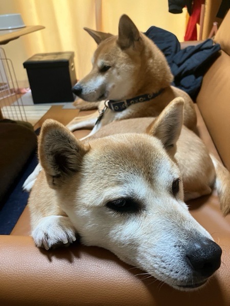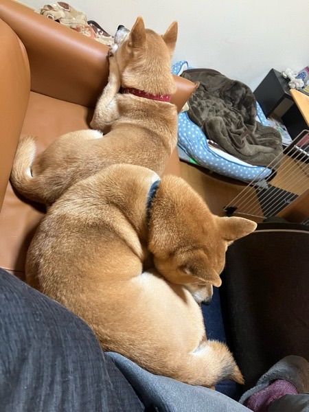 御飯を食べまして、ワッチャカコンビが くっ付きまして 休憩😴