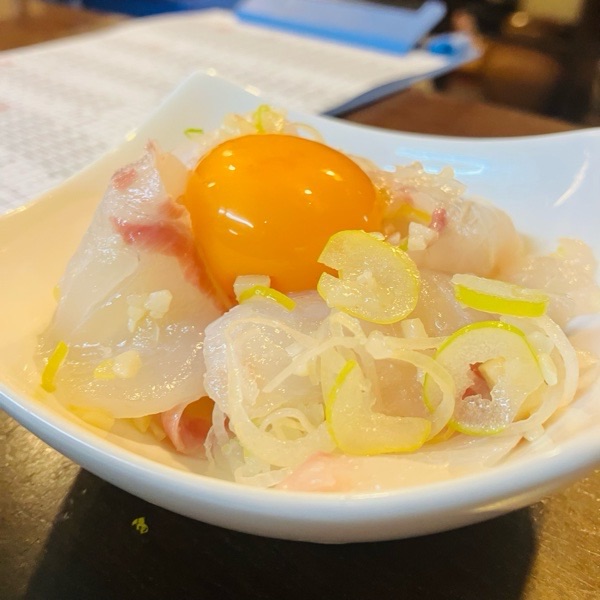 活〆天然石鯛の塩ユッケ。