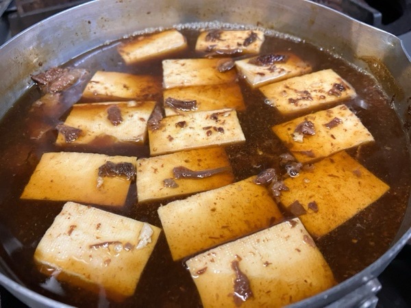 お店の準備へ入りまして、馬出汁煮豆腐をコトコト🤗