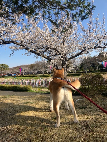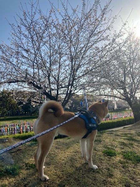 桜と背中🐶
