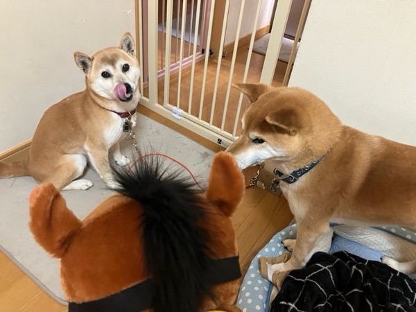 持ち帰りますと、食べれましゅか⁈の みるく先生と ちょっとビビってる感じのリリっちょでした😅