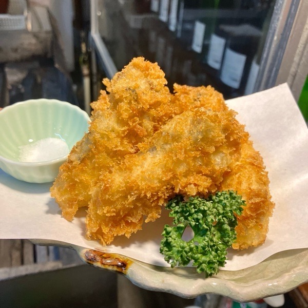 お塩で食べるカキフライ。