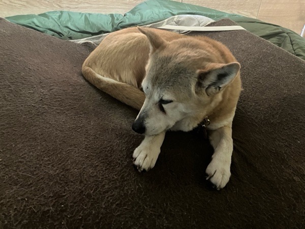 朝陽が眩しそうなヒバ子さんでした🐕