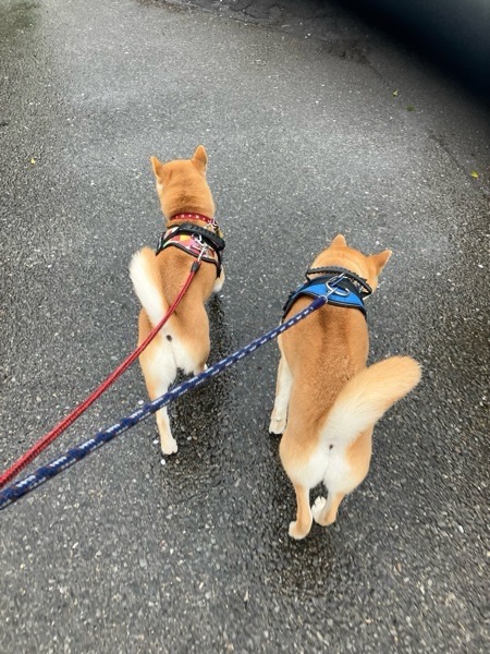 グイグイ引っ張るワッチャカコンビですが、ボスのシッコタイムは 止まって待ちます🫡