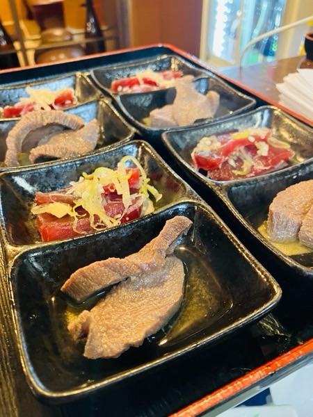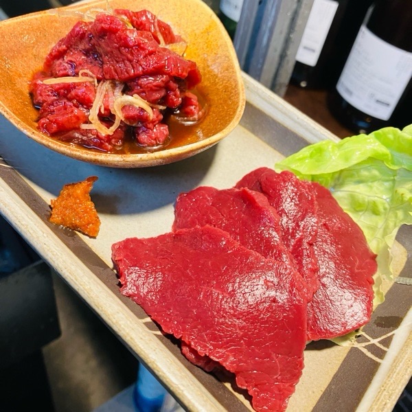 会津馬刺しと桜ユッケのハーフ&ハーフ。