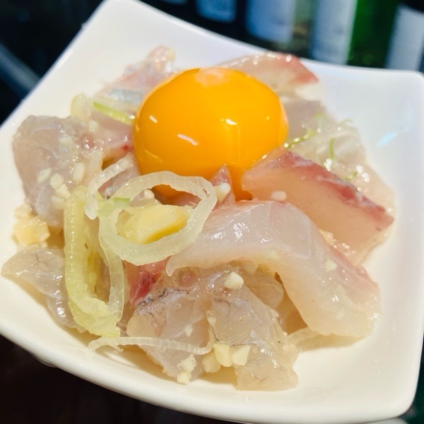 活〆すずきの塩ユッケ。