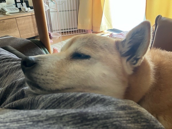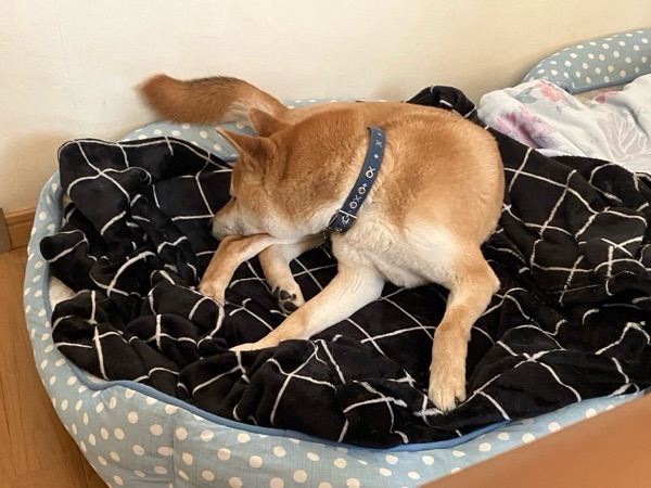 帰って来てから、お布団で寝ておりましたヒバ子さんと寝る場所の相談でした😅