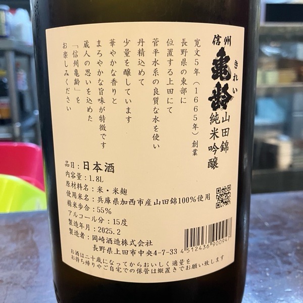 完売の信州亀齢、純米吟醸 山田錦に変わります。