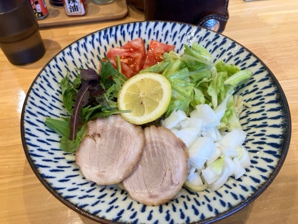 お店の準備を終わらせまして、ランチは【おと】さんで 夏野菜の冷やしまぜそば。