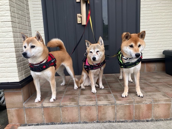 午後の お散歩は、涼しめだったので トリオ一緒に🐕