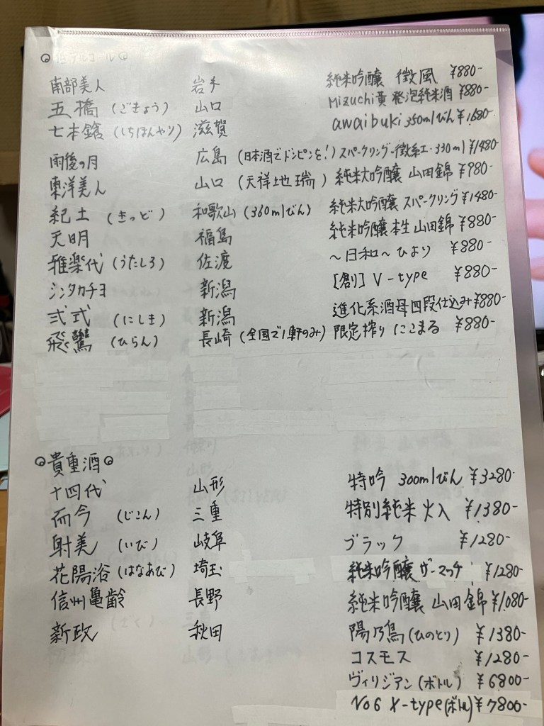 日本酒メニューも書き直しました🍶