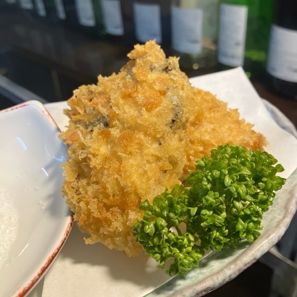 お塩で食べるカキフライ。