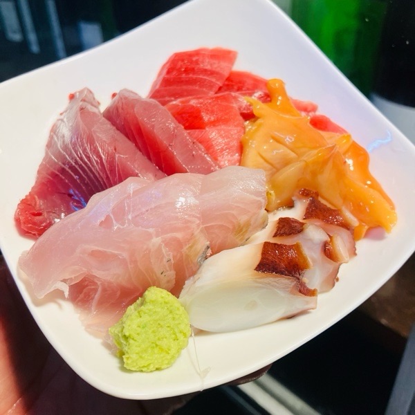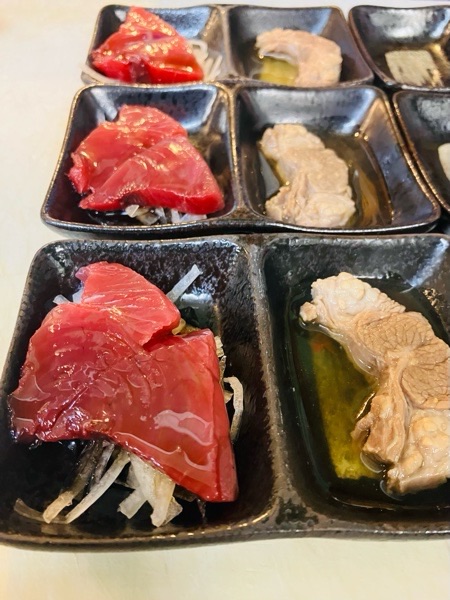 カツオの のっけ盛りと牛タン下の塩煮込みが お通しでした。