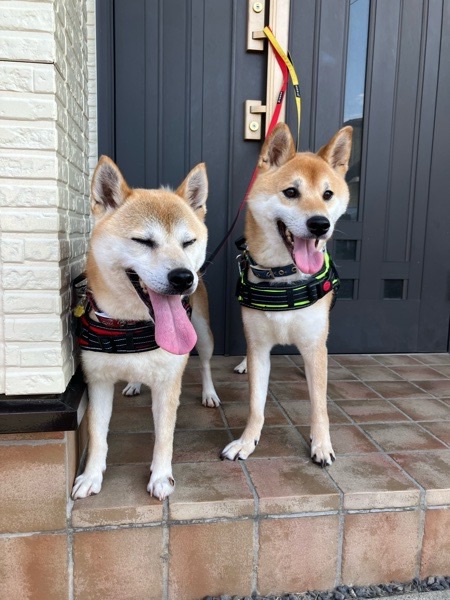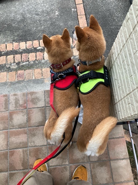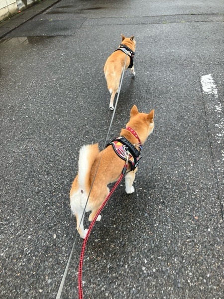 ワッチャカコンビは、暑いのに グイグイと お散歩行くんだと引っ張り合いで ハァハァと(大汗)