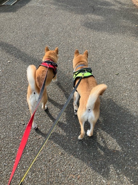 先に散歩しました ヒバ子さんは、ワッチャカコンビの散歩の時間を使いまして、マイペース朝御飯😋