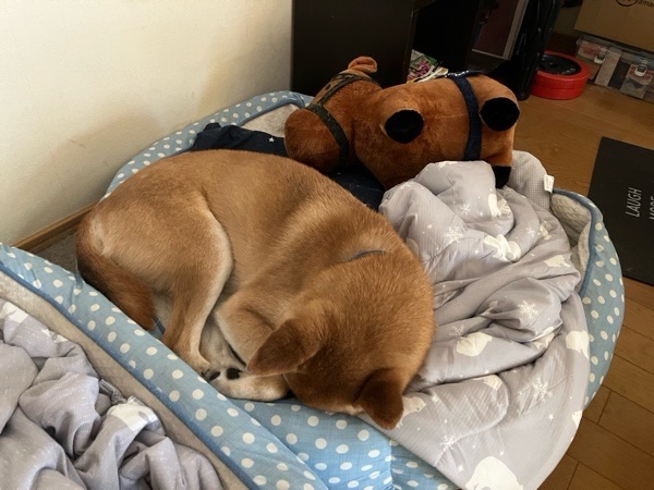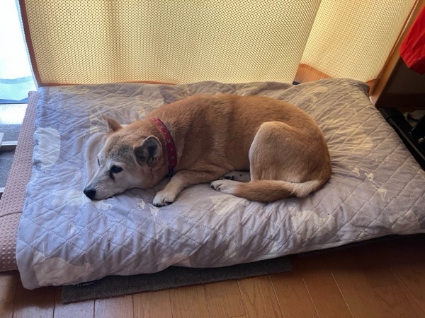 ヒバ子さんの お布団、サンキで夏バージョン 買い替えました🐶
